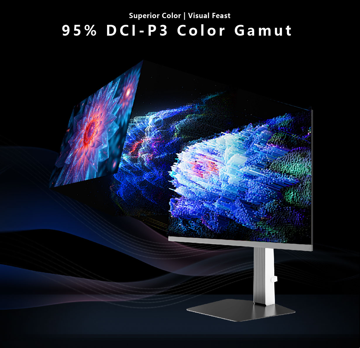 Con una amplia gama de colores DCI-P3 de calidad cinematográfica del 95%, el monitor ofrece rojos más intensos, azules más profundos y escenas más realistas. Ideal para: 1. Jugadores que buscan inmersión 2. Diseñadores y editores de video 3. Marcas que buscan una precisión de color superior. Un festín visual diseñado para todos los ojos que anhelan una intensidad superior.